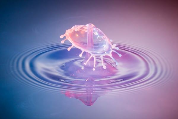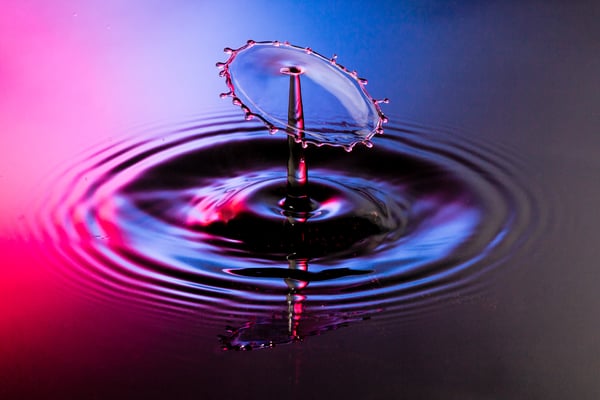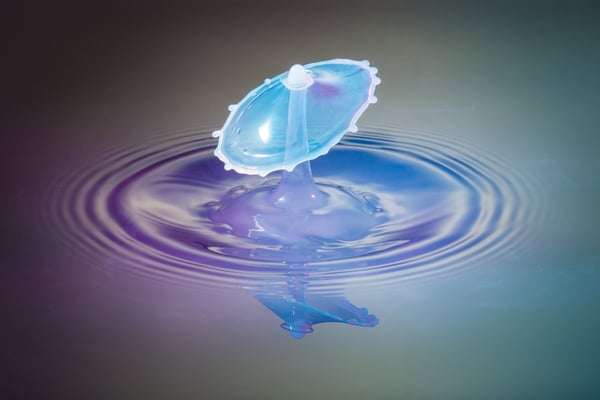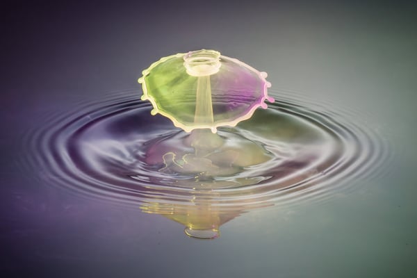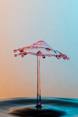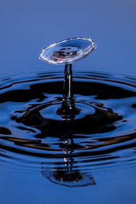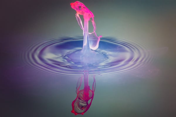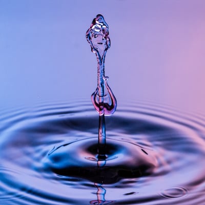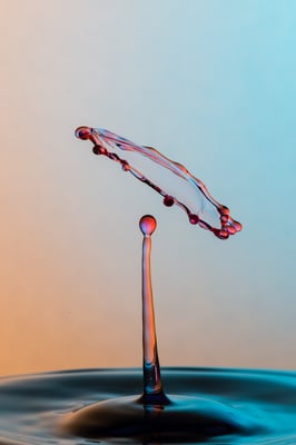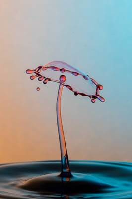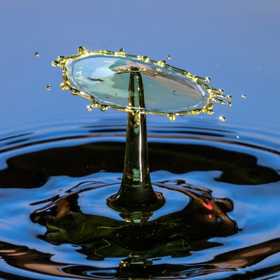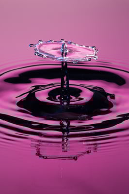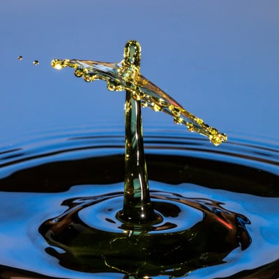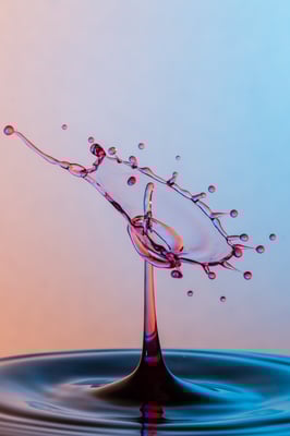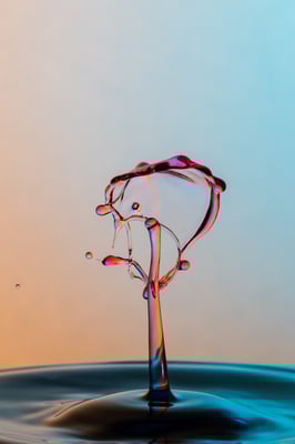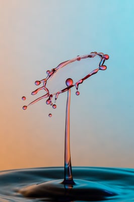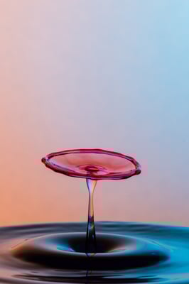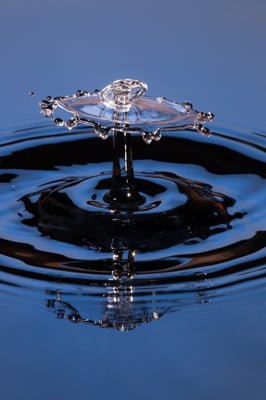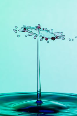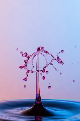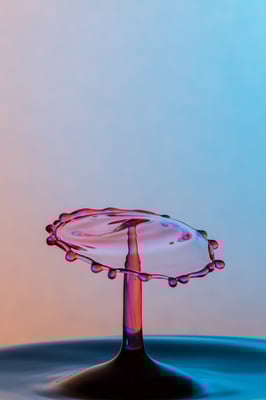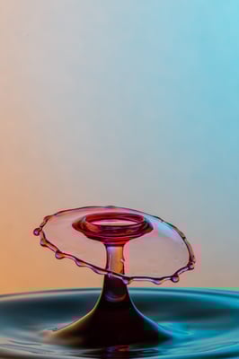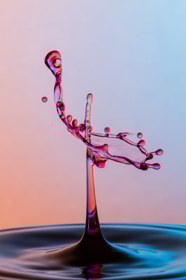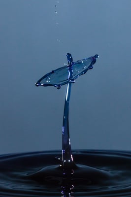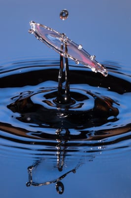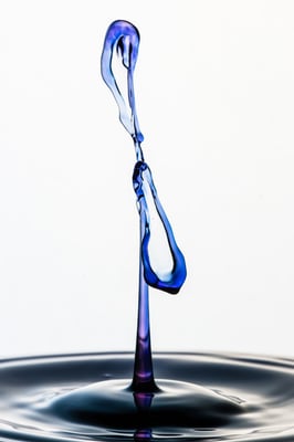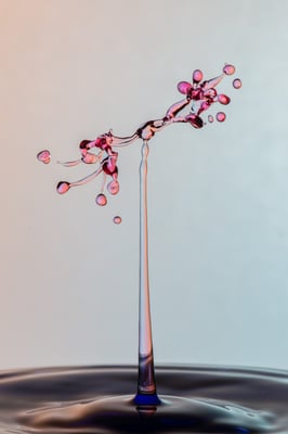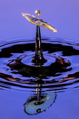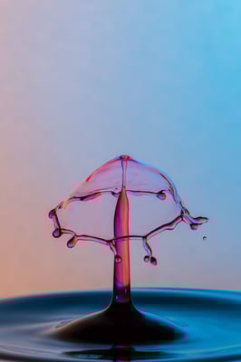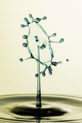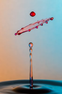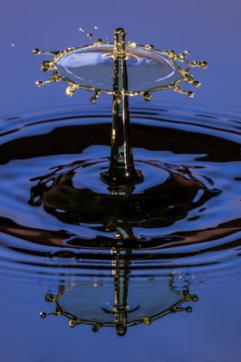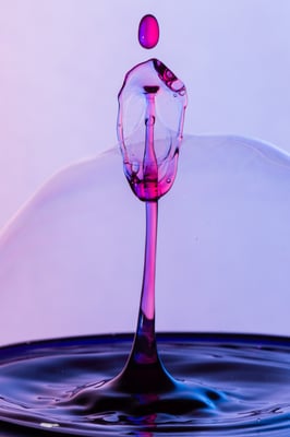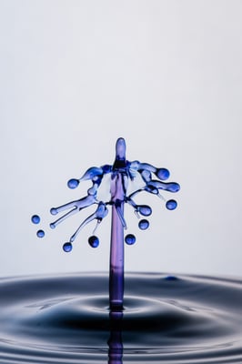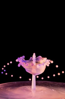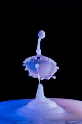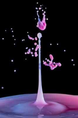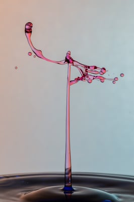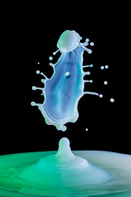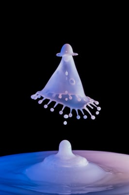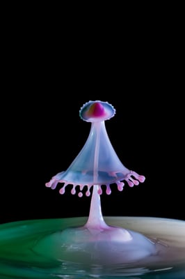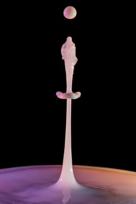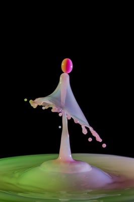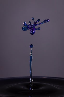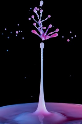Jag har verkligen fastnat för det här med droppfoto. Kul, utmanande och underhållande. Det som är givande är att ingen bild blir den andra lik. Du kan inte planera hur bilden ska bli... vätskan lever sitt eget liv. Och det är så himla roligt. I några av nedanstående bilder har jag blandat mjölk och vatten. Mjölk är pga sin viskositet och densitet lättare att jobba med än vatten, men en liten nackdel är att vätskan blir vit. Därför prövade jag med att spä ut mjölken för att få lite av mjölkens elastiska förmåga men ändå behålla lite av vattnets genomskinliga färg. Det blev inte riktigt bra... Jakten på den perfekta droppbilden går vidare...